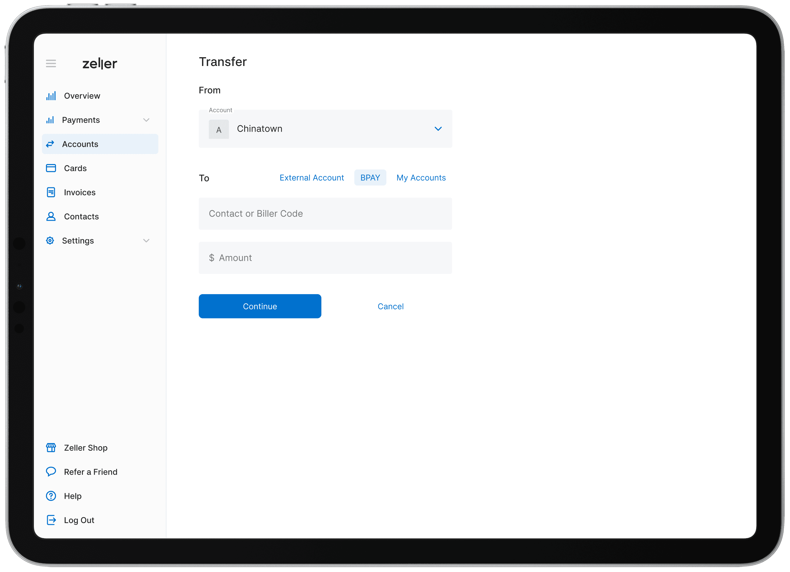 It's free to make bill payments with BPAY from your Zeller Transaction Account.